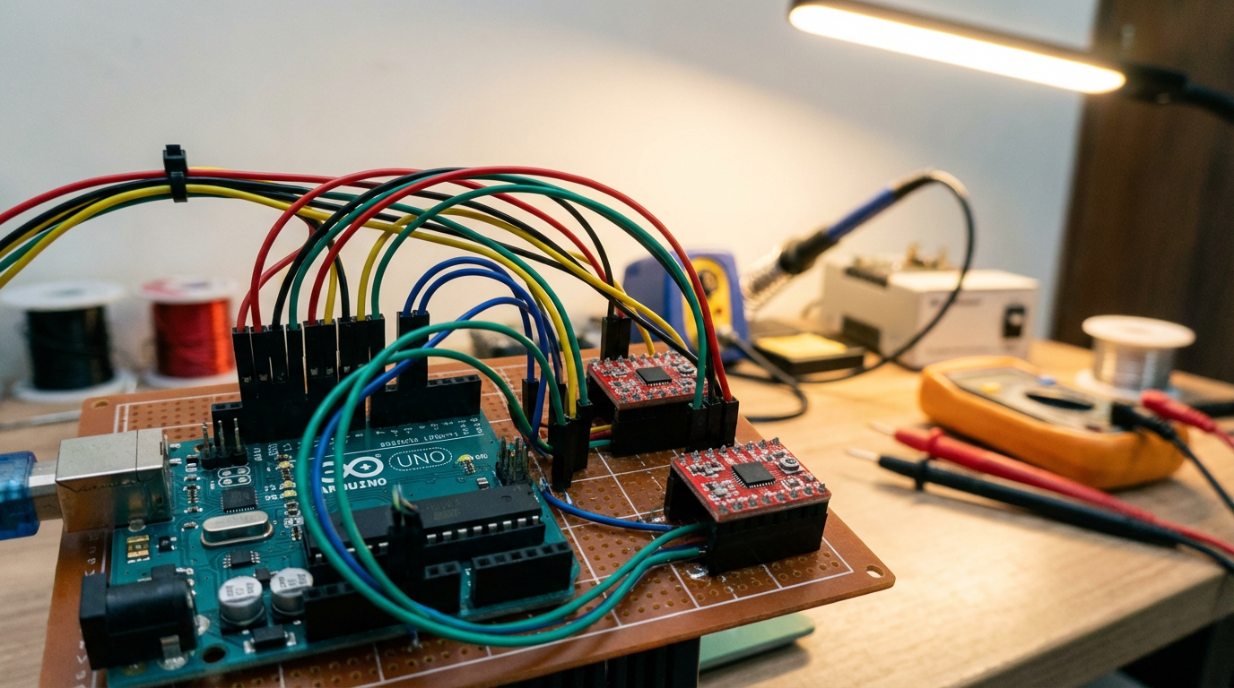 Arduino‑class boards are more than capable of driving two axes when paired with suitable drivers. The Instructables project using an Arduino UNO, a SparkFun Quadstepper, and salvaged scanner mechanics is a textbook example: one board, one driver module, and two axes of reasonably precise motion for very modest cost.