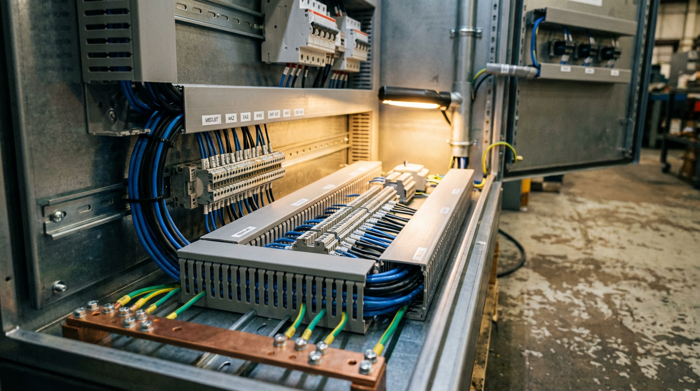 One subtle but important point from the same guide is maintenance access. Panels that are jammed into corners or packed so tightly that you cannot get a meter on a terminal invite unsafe workarounds. Provide adequate door openings, interior lighting, and a convenience receptacle so technicians can safely power laptops and test equipment during troubleshooting.