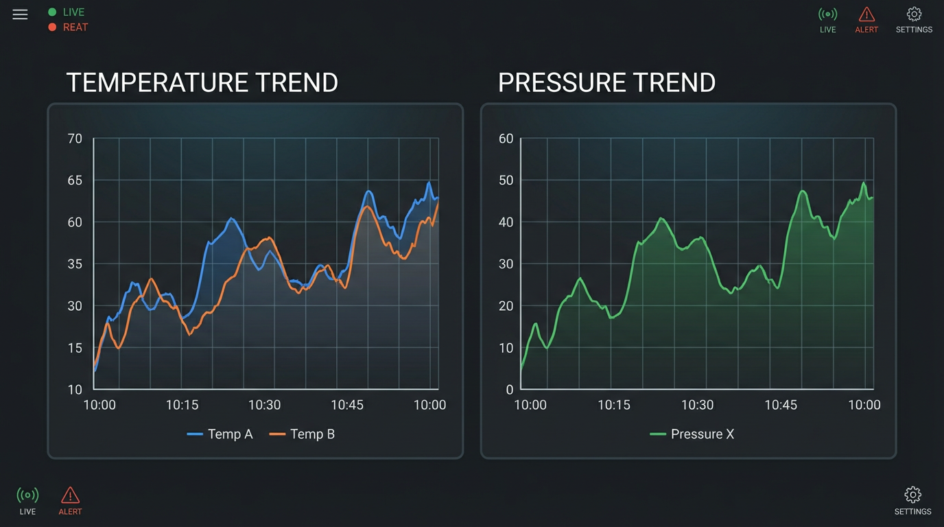 This is not just an HMI convenience feature. A future engineer who needs to diagnose a sporadic fault on a 1769-L33ER system will be deeply grateful for clean, well-organized trend logs of key pressures, temperatures, speeds, and valve positions over time.