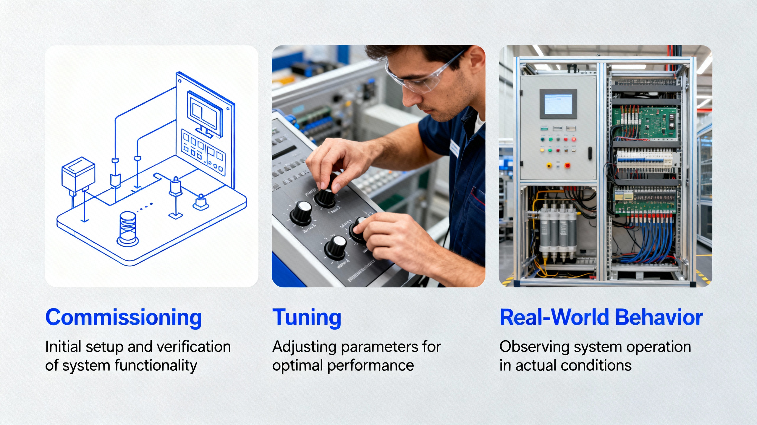 After wiring, parameterization, and integration, the real test is how the machine behaves under load. The manuals and engineer guides all recommend a supervised, incremental approach.