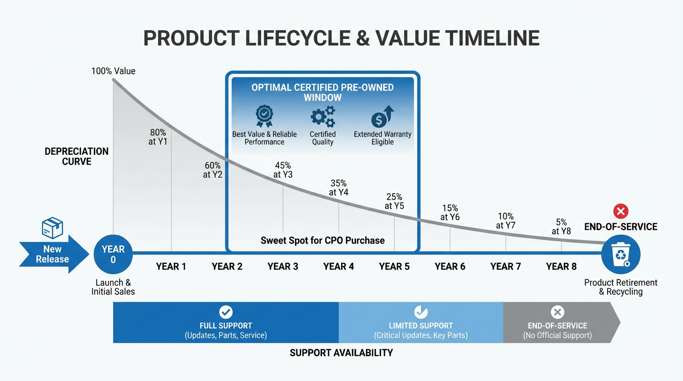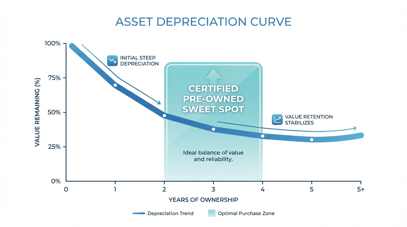 This table is conceptual rather than statistical. For monetary context, you can look back to the automotive world, where certified pre-owned vehicles almost always cost more than non-certified used examples but significantly less than brand-new cars. Dealer data and retail analysis typically place the certified pre-owned premium in the low thousands of dollars, while still benefiting from the twenty to thirty percent depreciation that many vehicles suffer in the first one to two years. Certified buyers pay extra for inspection, reconditioning, and warranty, but they dodge the steepest part of new-car depreciation.