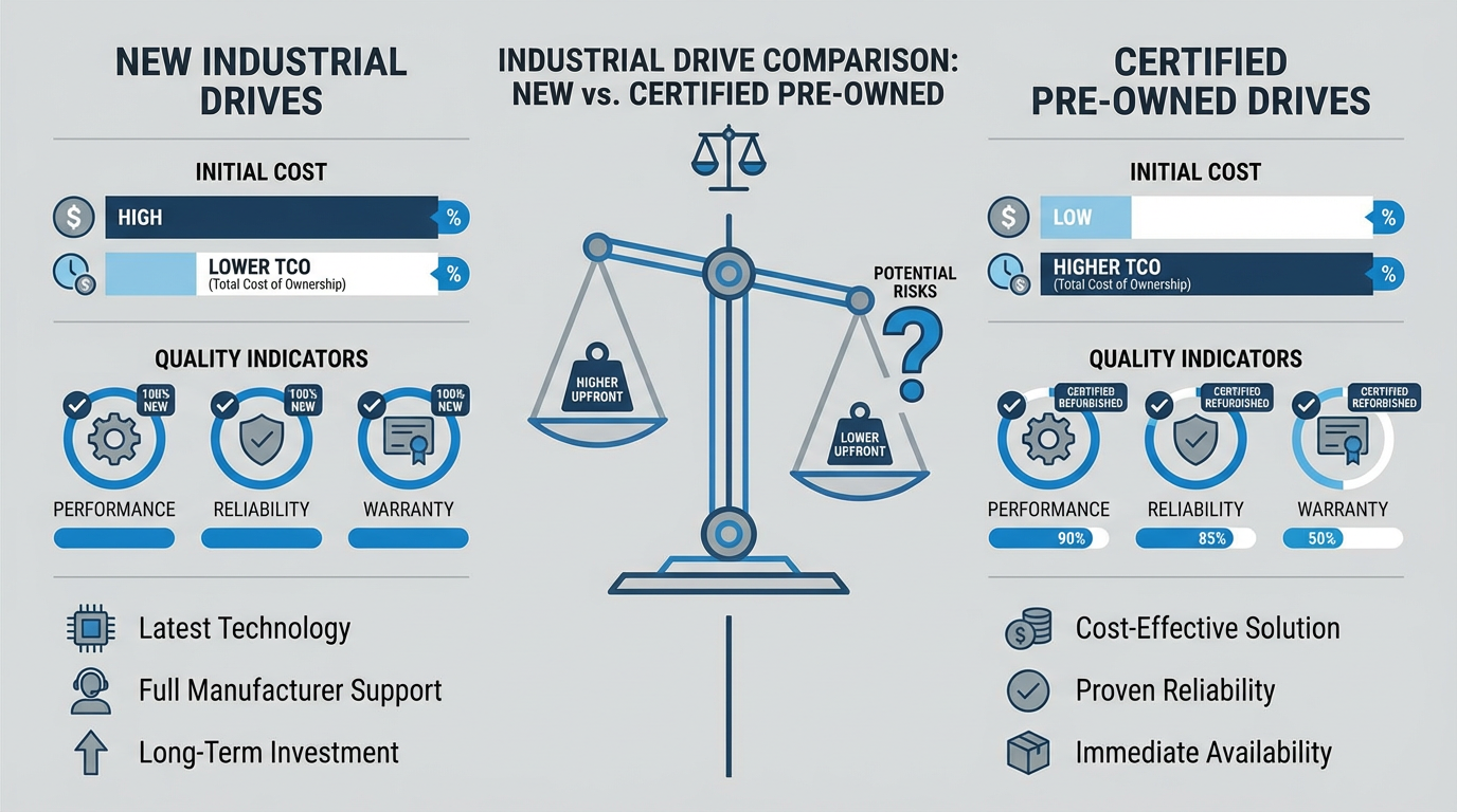 No. New drives still make the most sense when you are designing long-lived systems around current platforms, when you need the longest possible warranty, or when you rely heavily on the latest diagnostics and features that older models simply do not offer. Certified pre-owned shines when you are working with installed bases, retrofits, or constrained capital and want to reduce risk without paying new-drive prices.