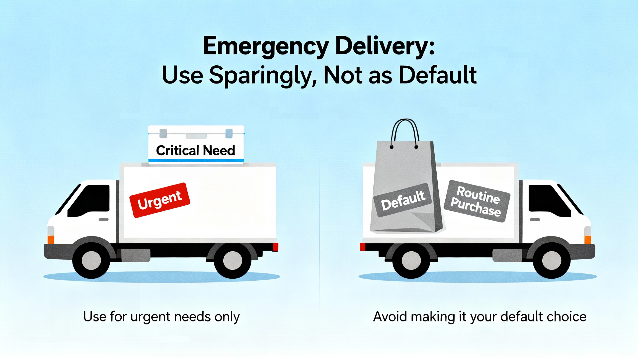 In that model, emergency delivery covers the surprises you could not reasonably stock for, plus the gap between a failure and the arrival of a new spare. The more you refine your spare list, the less often you need to pick up the phone for an emergency drive.