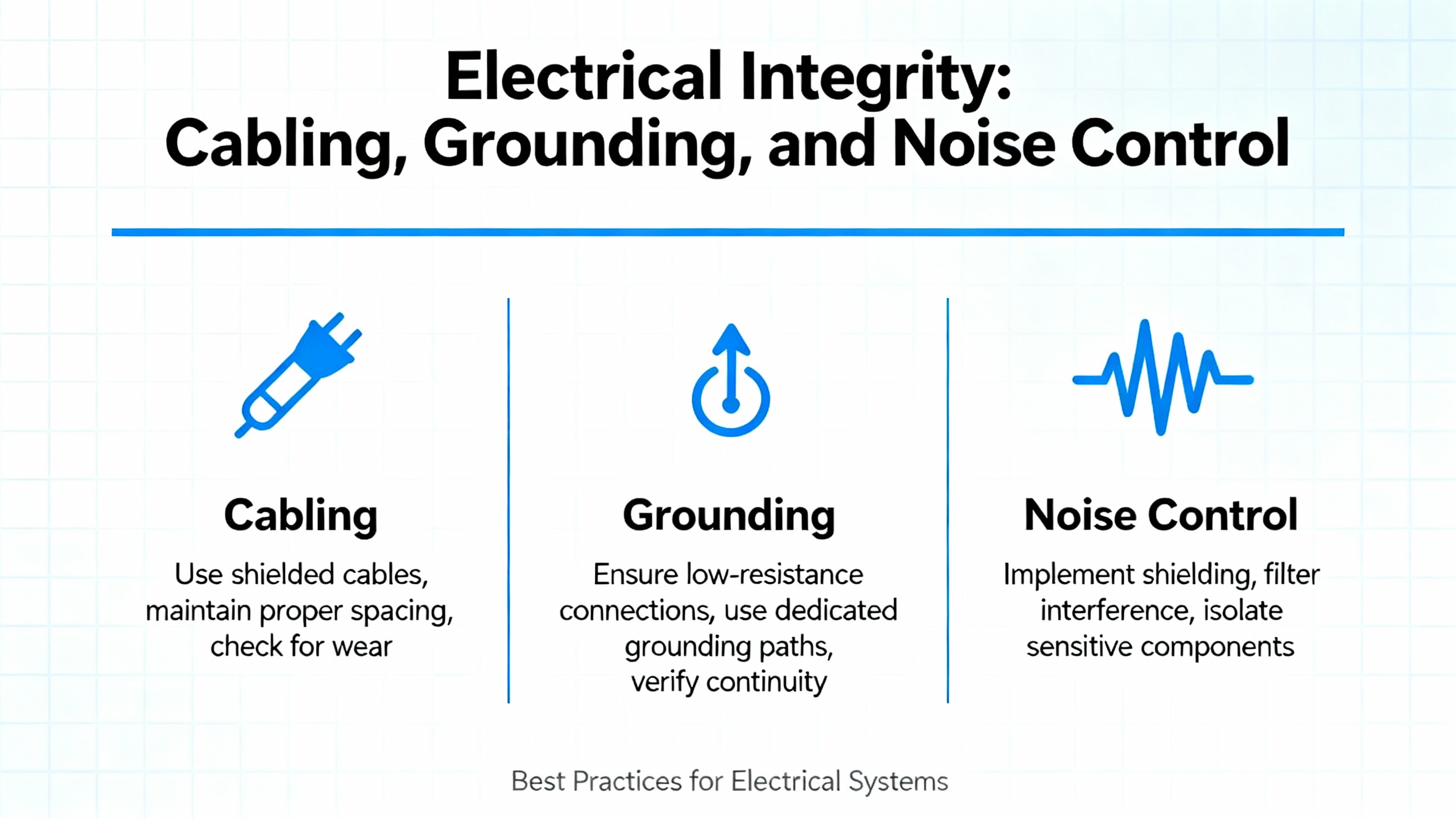Once the mechanical side is under control, electrical integrity becomes the next limiting factor. Encoders live in the same cabinets as drives, contactors, and power supplies, and in the same conduits as motor leads and high‑current buswork. Without disciplined wiring, feedback errors become inevitable.