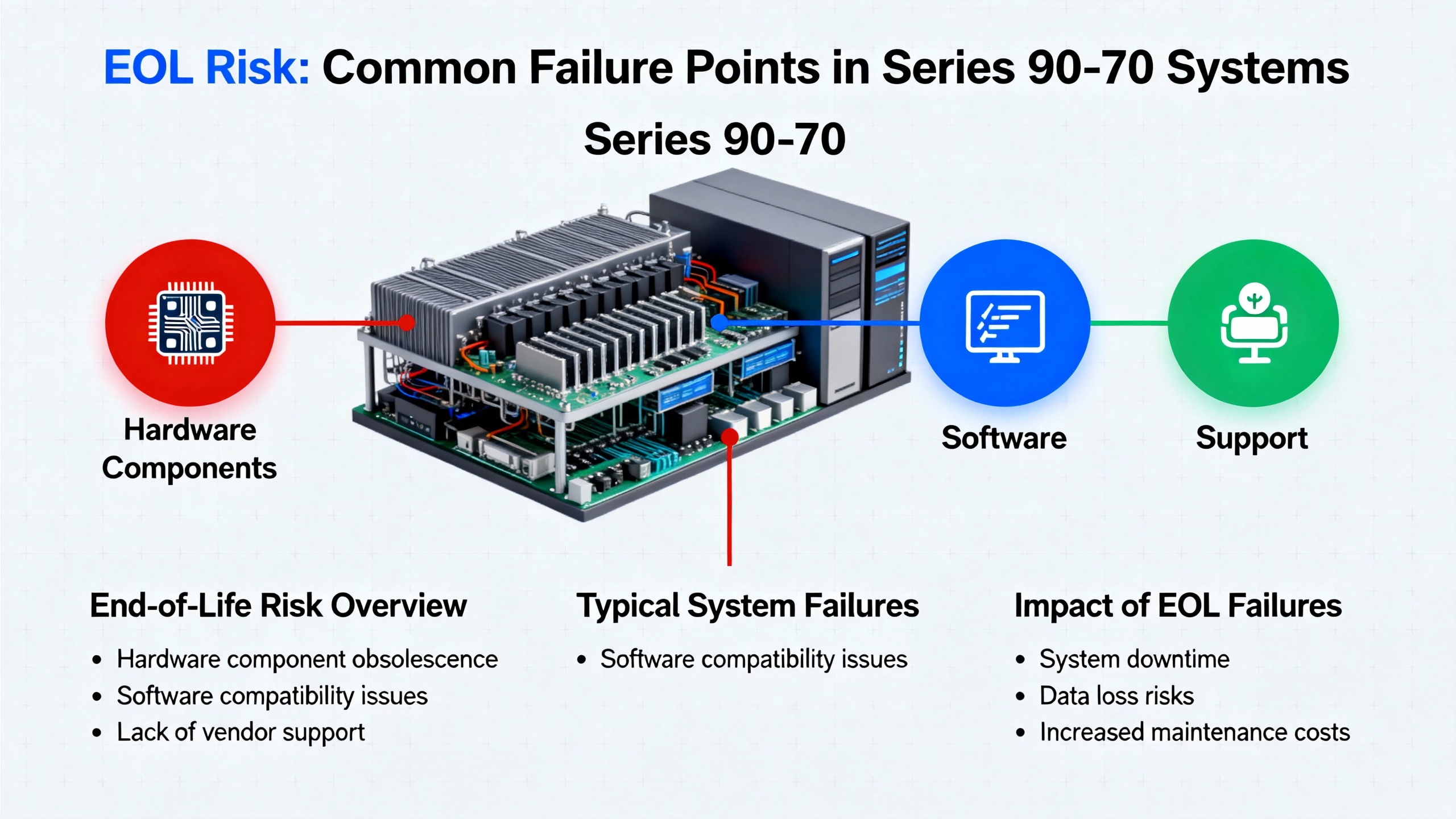 End‑of‑life in this context means the original manufacturer has stopped building and fully supporting the hardware. As Amikong points out, obsolescence often arrives earlier than formal EOL when parts no longer align with current technologies, materials, or standards. The practical impact on a 90‑70 user is straightforward: modules become scarce, lead times stretch, and prices increase.
