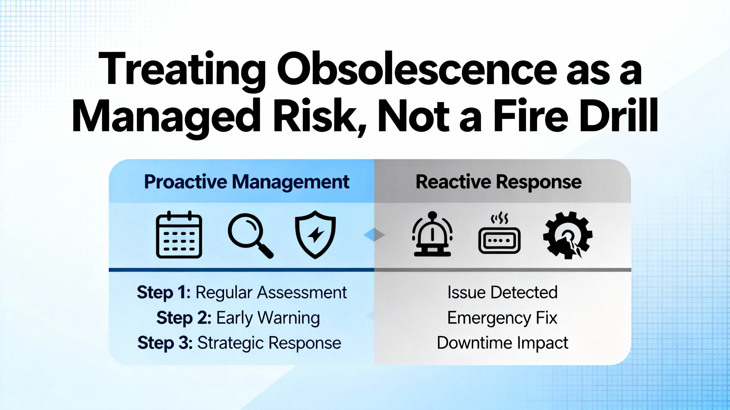 According to analysis summarized by Amikong drawing on AH Group, Altium, Component Dynamics, and VSE, unmanaged obsolescence leads to premium broker pricing, forced redesigns on bad schedules, production delays, and higher compliance risk. For Series 90‑70 users, this translates to paying top dollar on short notice for a CPU or network module on an auction site, while the plant sits idle.