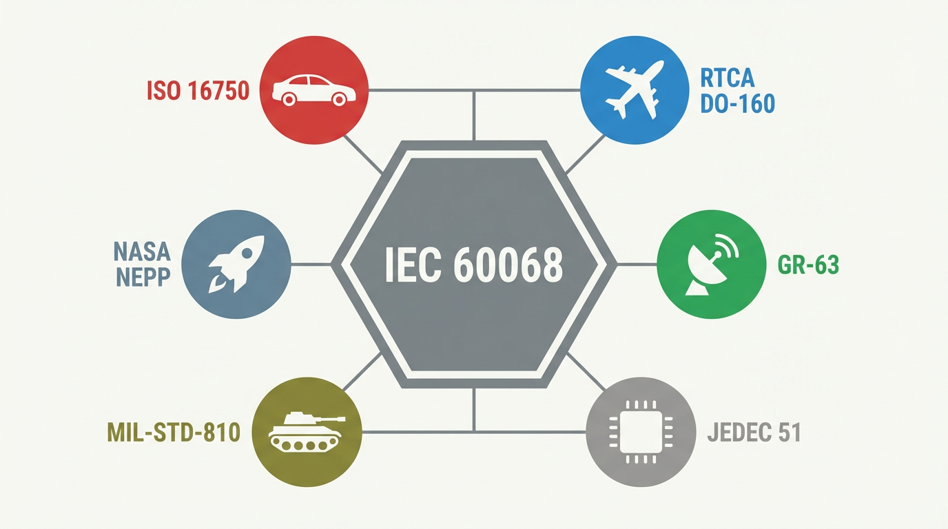 Wide‑temperature specifications are only as good as the test methods behind them. In industrial automation, those test methods are heavily influenced by the IEC 60068 family and a cluster of sector‑specific standards in automotive, aerospace, telecom, and military applications.