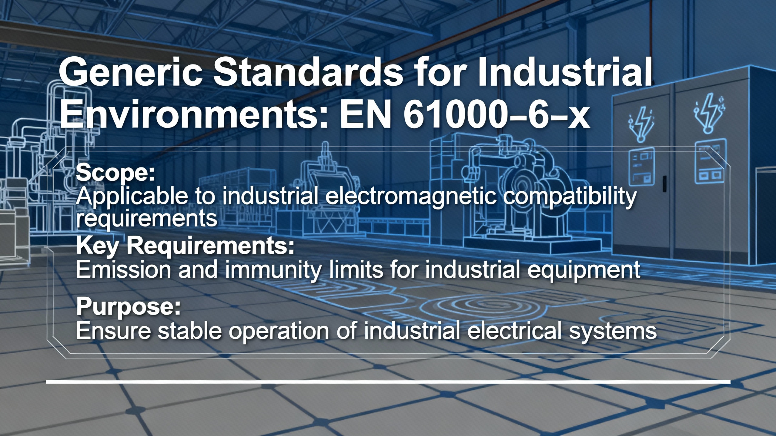 Industrial controllers rarely live in residential environments; they live in cabinets on noisy factory floors. That is where the generic standards EN 61000‑6‑2 and EN 61000‑6‑4 come in.
