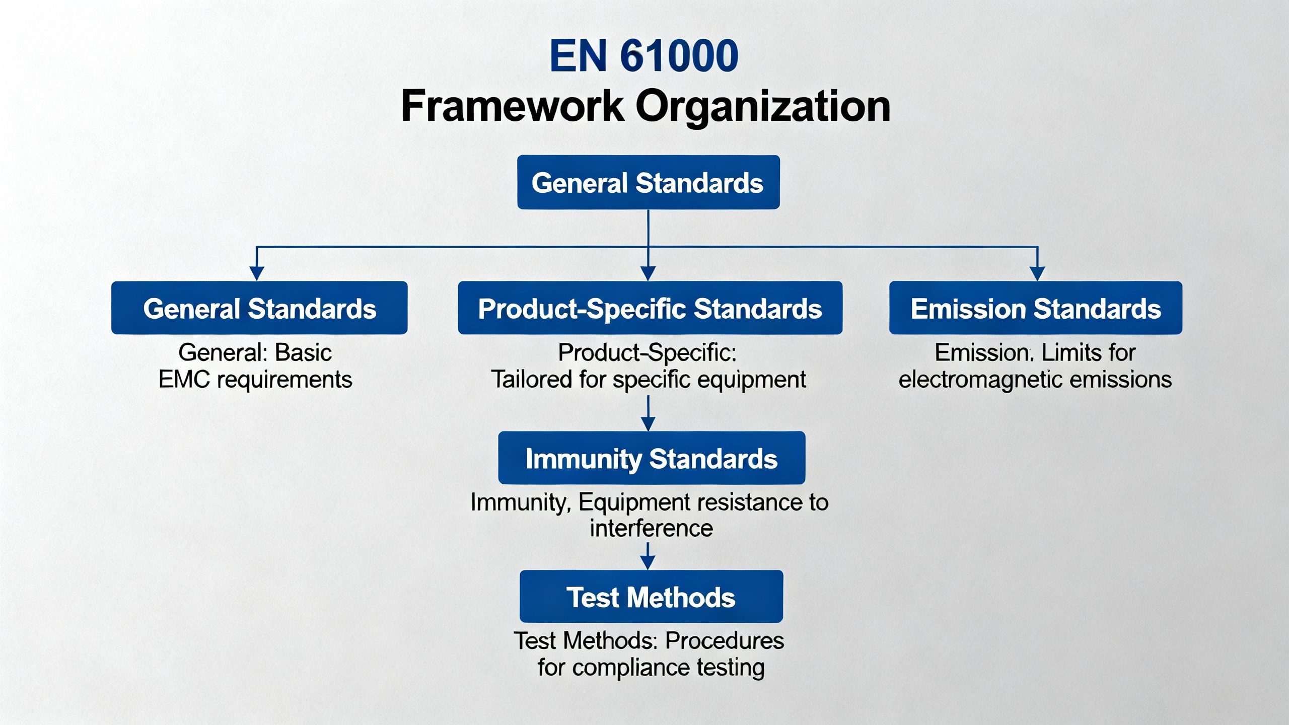 The EN 61000 standards are the European adoption of the IEC 61000 series. UL Solutions and Ametek CTS both describe IEC 61000 as a foundational global EMC framework: it defines how to measure emissions and immunity, what levels you must meet in different environments, and how to classify products.