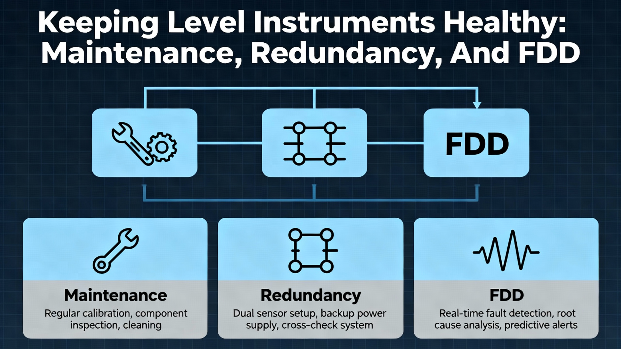 Running plants reliably is not just about fixing faults; it is about preventing them. Field-instrument studies and practical guidance from sensor vendors point to several effective strategies for level devices.