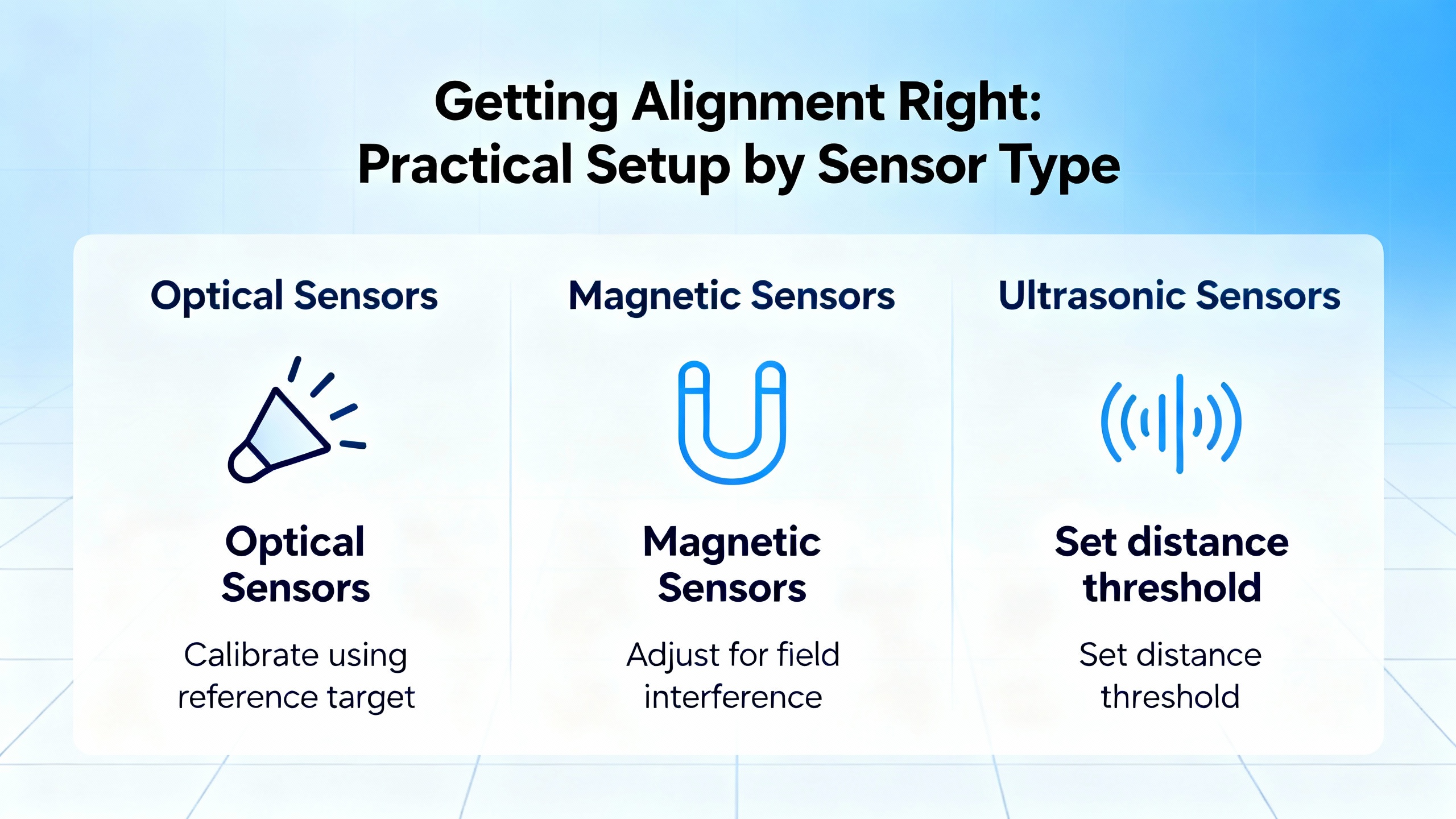 Alignment sets the geometry; calibration sets the thresholds and behavior. Several sources, including Orient-Optocoupler, TTco, BxuanSensor, Meyer, and Valin, highlight calibration as the difference between a sensor that works on day one and one that keeps working years later.