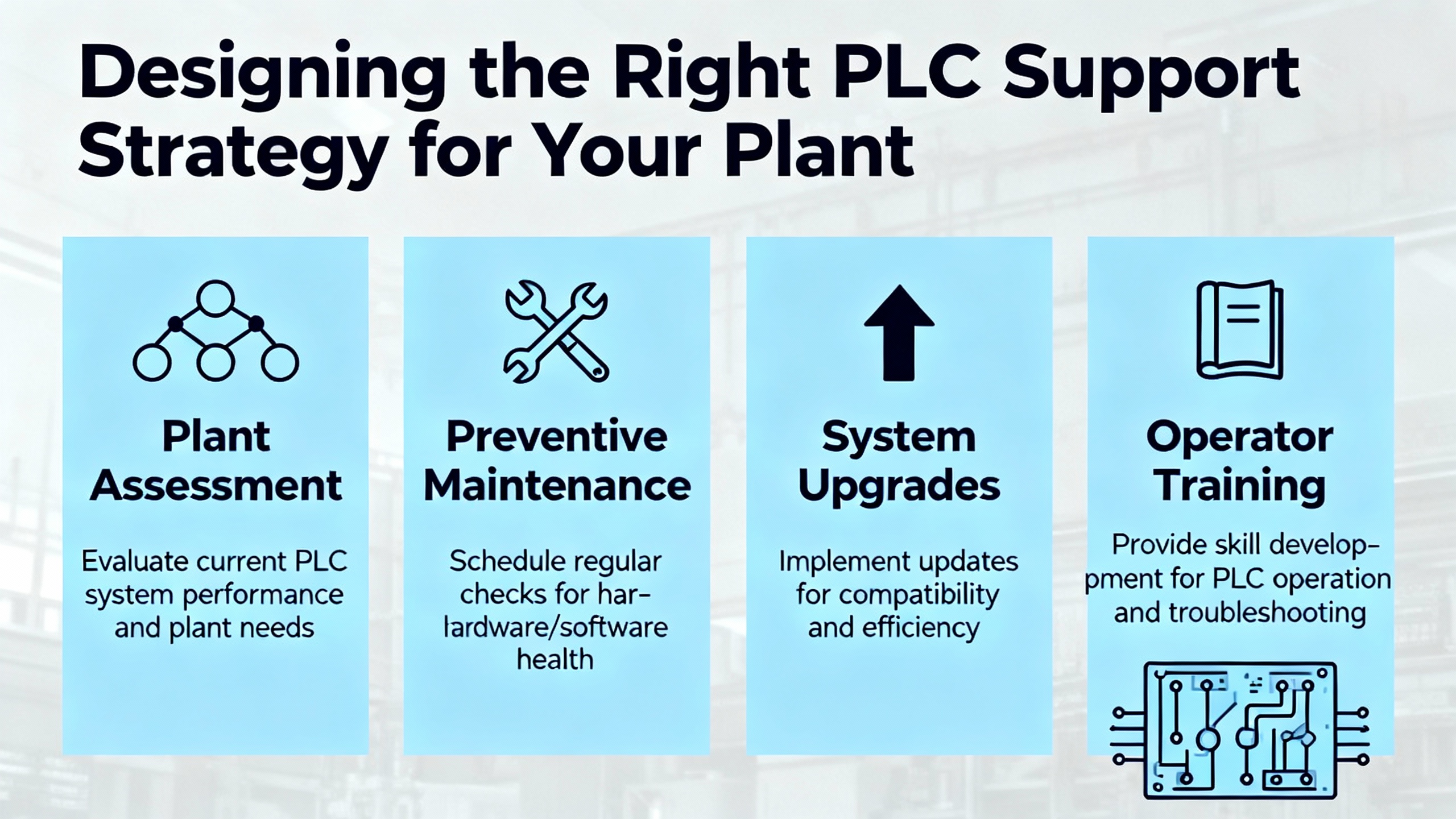 Finally, build metrics and review into the process. Research on contract renewal best practices recommends setting explicit objectives for each agreement, such as targeted uptime improvements, cost reductions, or consolidation of vendors, and then reviewing performance against those objectives before renewal. For PLC support, that means tracking downtime, incident response times, repeated failures, and the status of recommended upgrades, and asking whether the contract and partner mix is still the right tool for the next period.