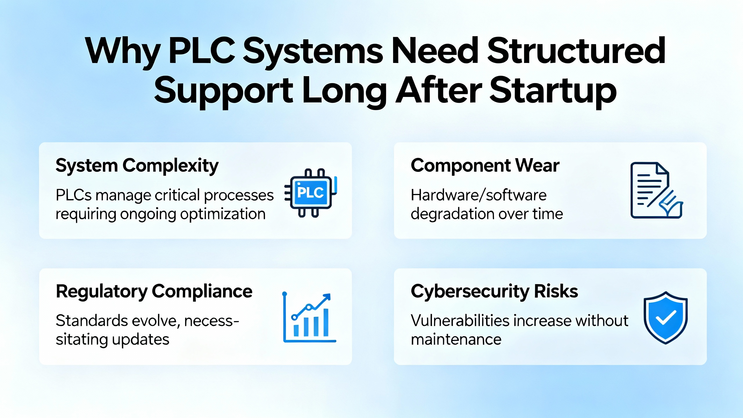 But maintenance addresses only part of the picture. Three additional forces make extended support contracts particularly important for PLC systems.