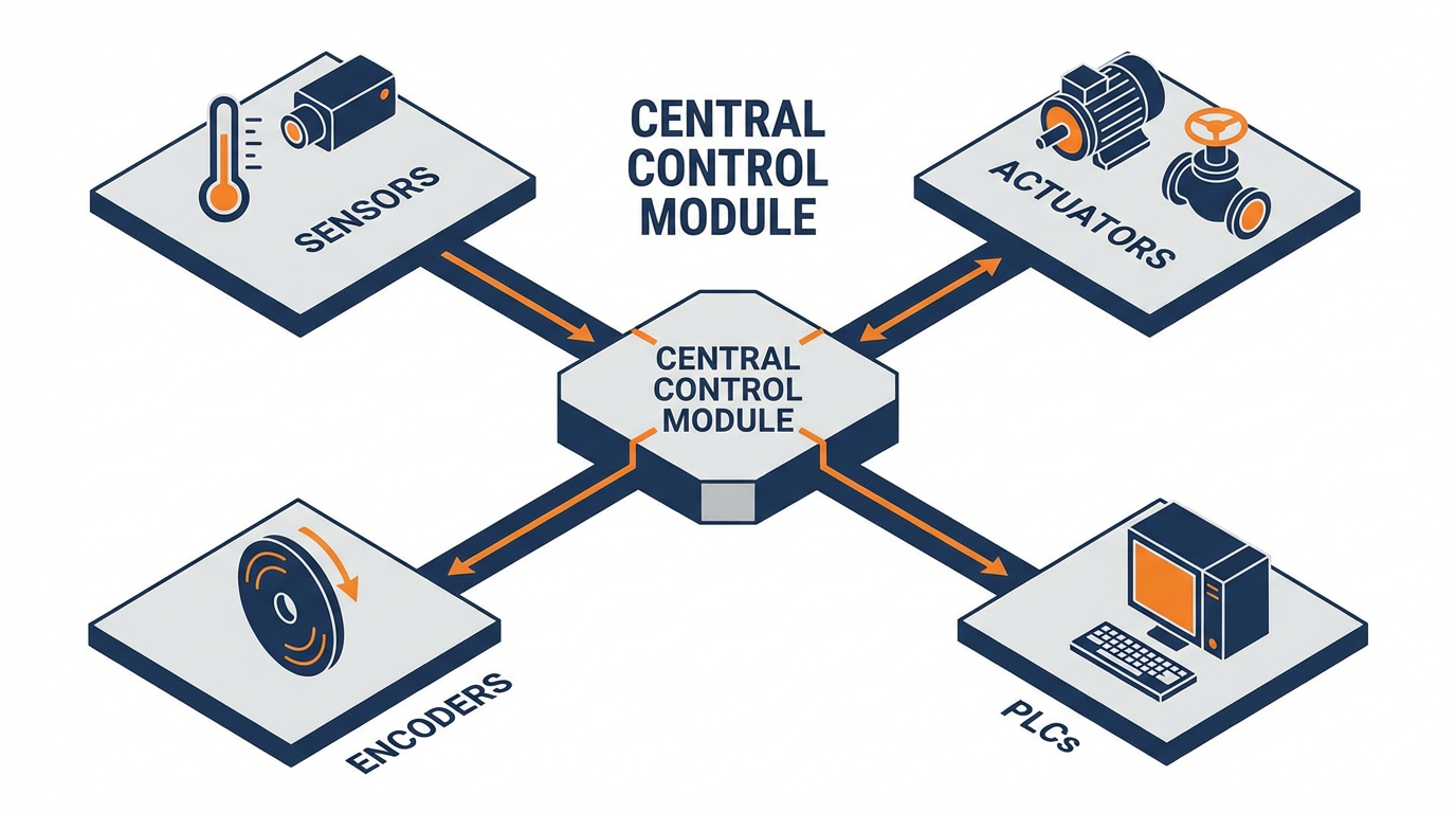 Motion‑control primers, such as those from the Association for Advancing Automation, explain that a motion system is built from mechanisms, motors, drives, controllers, HMIs, and feedback sensors. The controller serves as the brain, the drive and motor as the muscle, the network as the nervous system, and the mechanical stage as the skeleton. Control modes include position, velocity, and torque, implemented in open‑loop or closed‑loop topologies.