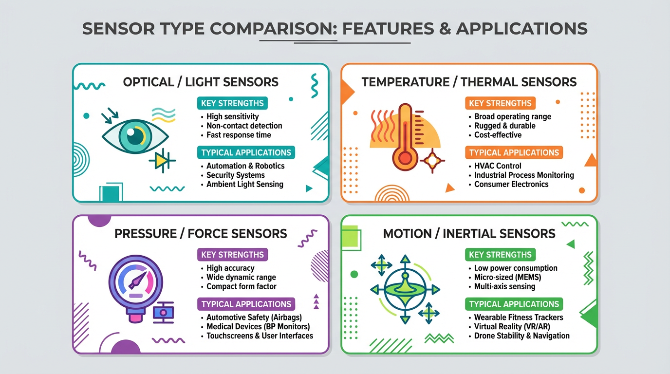 A concise way to think about sensor choices in a nanometer‑grade module is summarized below.