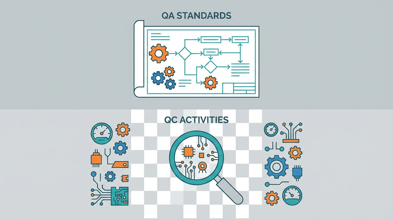 QC then becomes one part of that QA system: specific electrical, functional, and software tests defined in advance, applied consistently, and recorded.