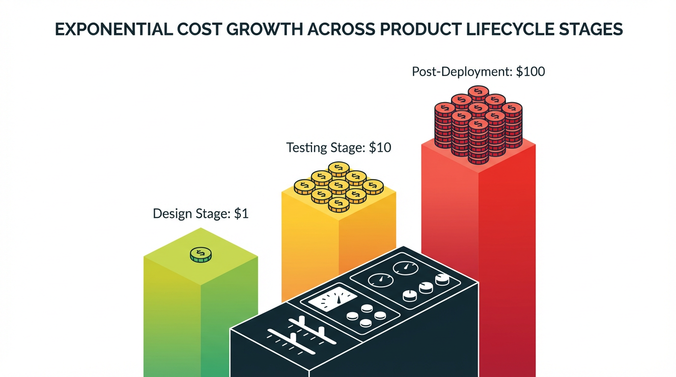 From a business perspective, quality studies note that correcting defects late in the lifecycle can cost an order of magnitude more than catching them early, and exponentially more once issues reach customers or regulators. That 1:10:100 pattern is as true for industrial controls as it is for consumer products.