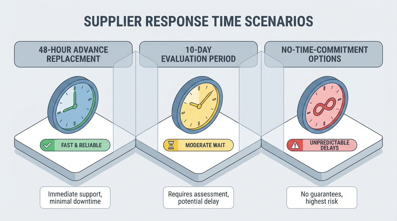 Some suppliers implicitly show their stance. PLC Ltd notes that once an RMA is issued, they generally ship an equivalent replacement PLC within forty‑eight to seventy‑two hours. Zortex describes cases where OEM‑backed refurbished IT equipment benefited from four‑hour on‑site response for critical failures. On the other hand, many refurbishers explicitly state that shipping is ground, and that expedited freight is at the customer’s expense.