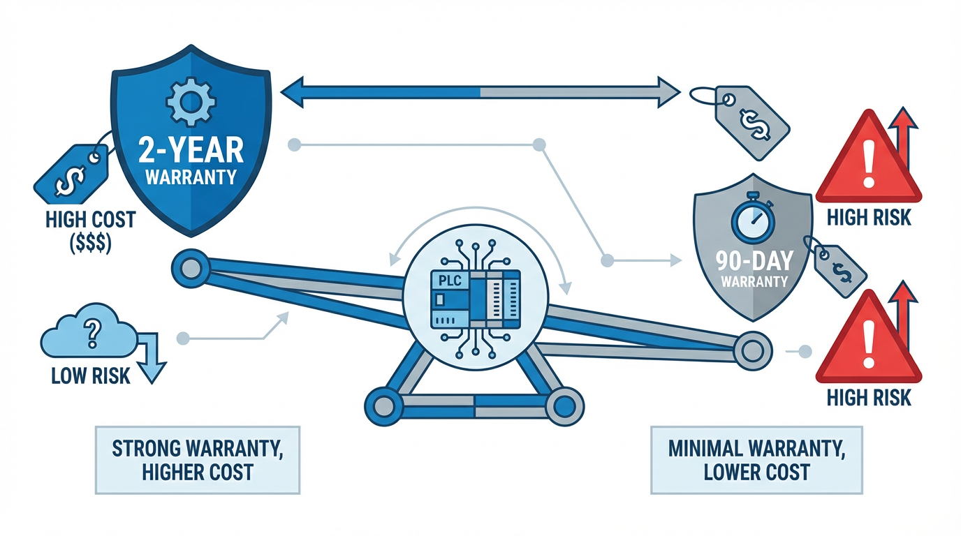 Take two things from this. First, warranty term is not a commodity; it is a design decision by each supplier. Second, long terms are not unheard of in refurb; multi‑year coverage exists today for PLCs when the refurbisher is confident in their process.