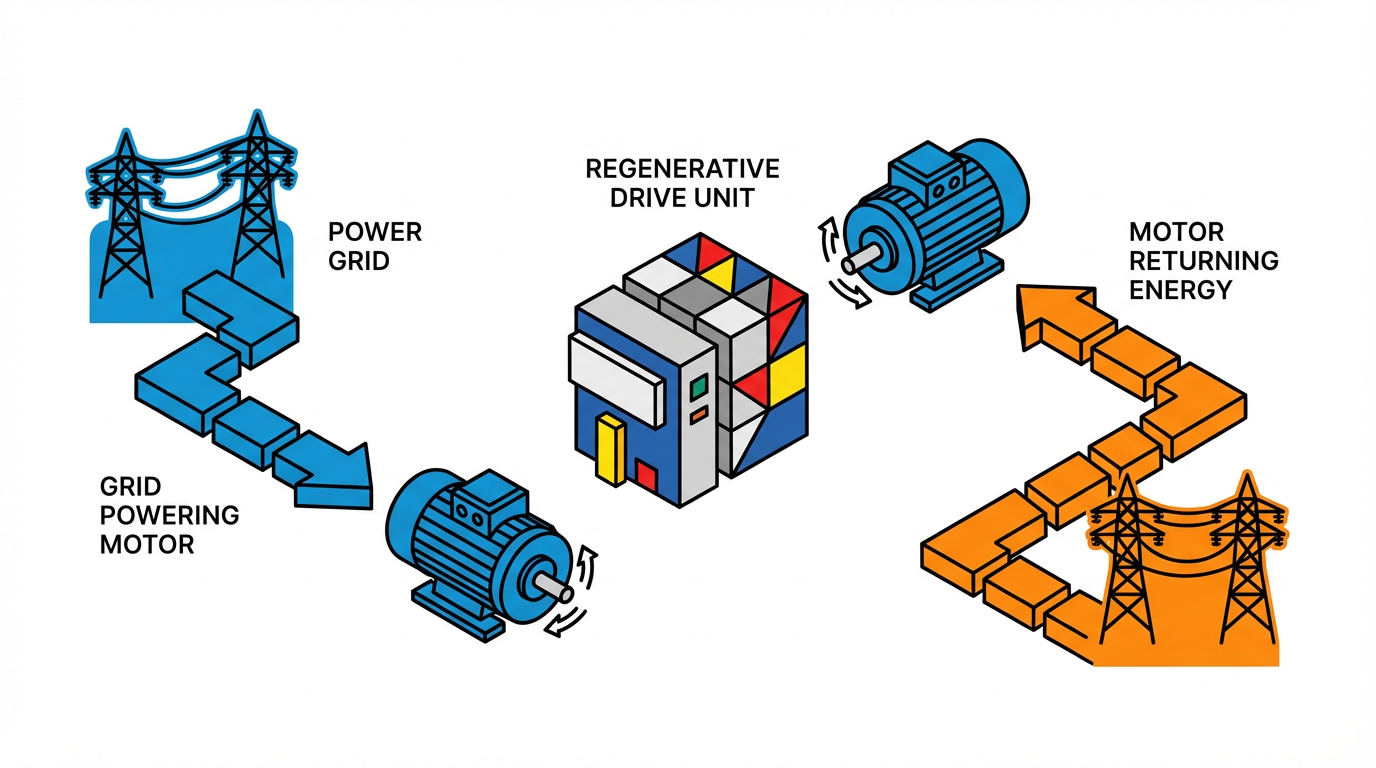 The key point is that a regenerative drive does not magically create free energy. It simply stops you from throwing away energy you already paid for, and it does so in a controlled, grid‑friendly way.