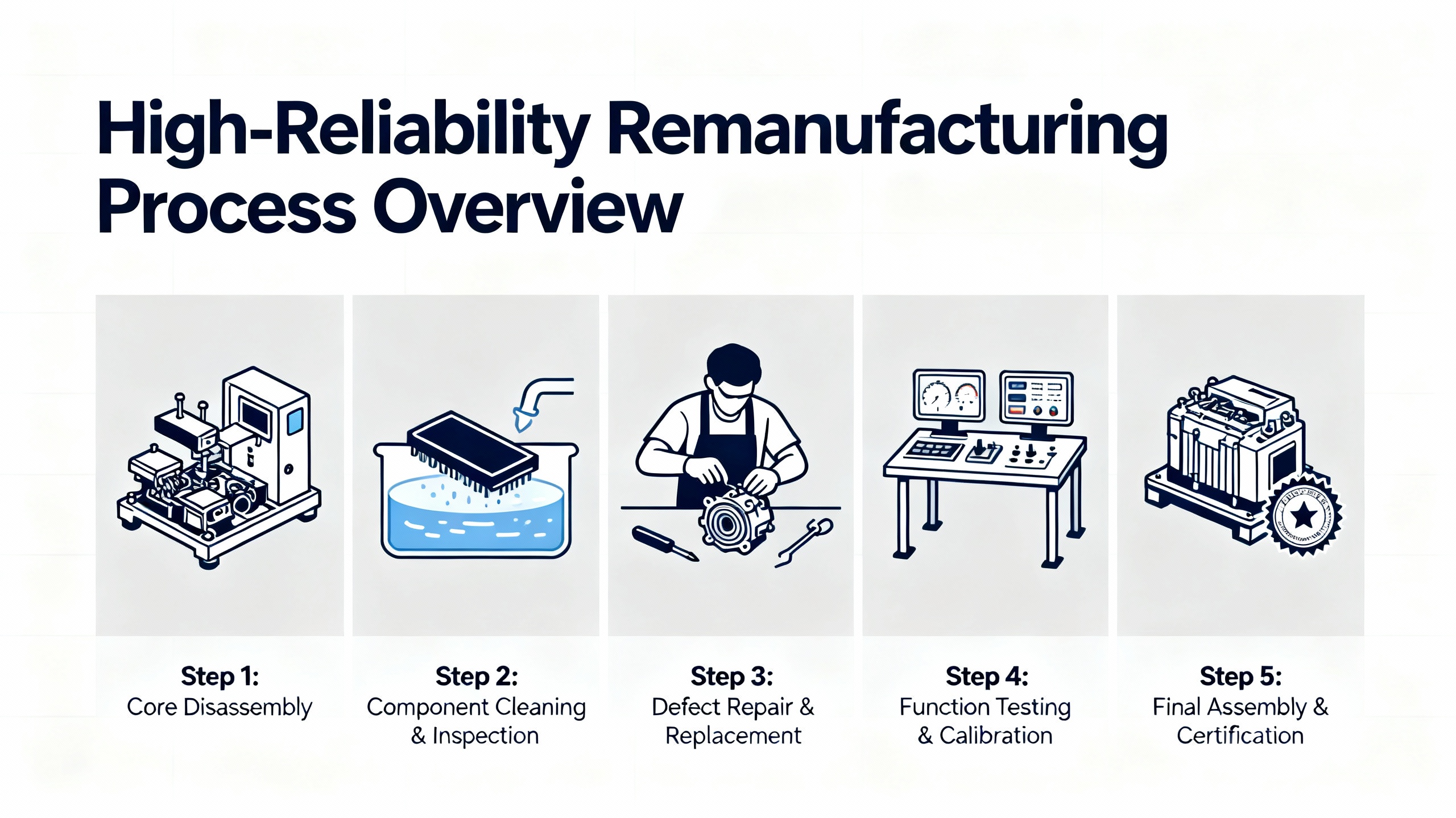 Taken together, process discipline, comprehensive testing, and documentation turn remanufacturing into a repeatable, auditable reliability practice rather than a gamble.