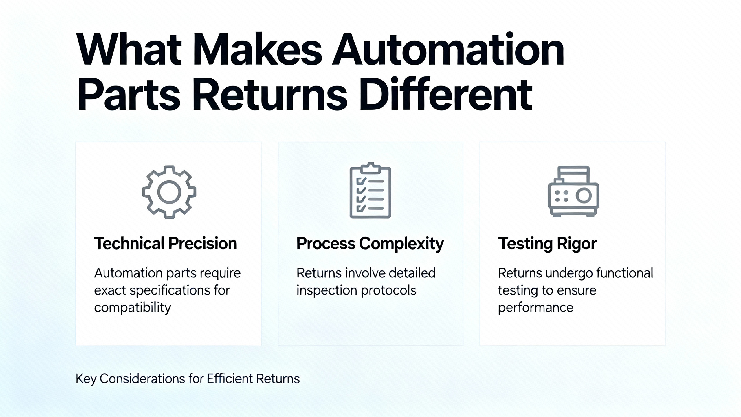 In well-run ecommerce operations, experts describe returns management as a full workflow: initiation, decision, logistics, inspection, disposition, and outcome. A practical guide published by TechnologyAdvice lays this out in detail with standard operating procedures from RMA creation through restocking. The same logic applies cleanly to automation parts.