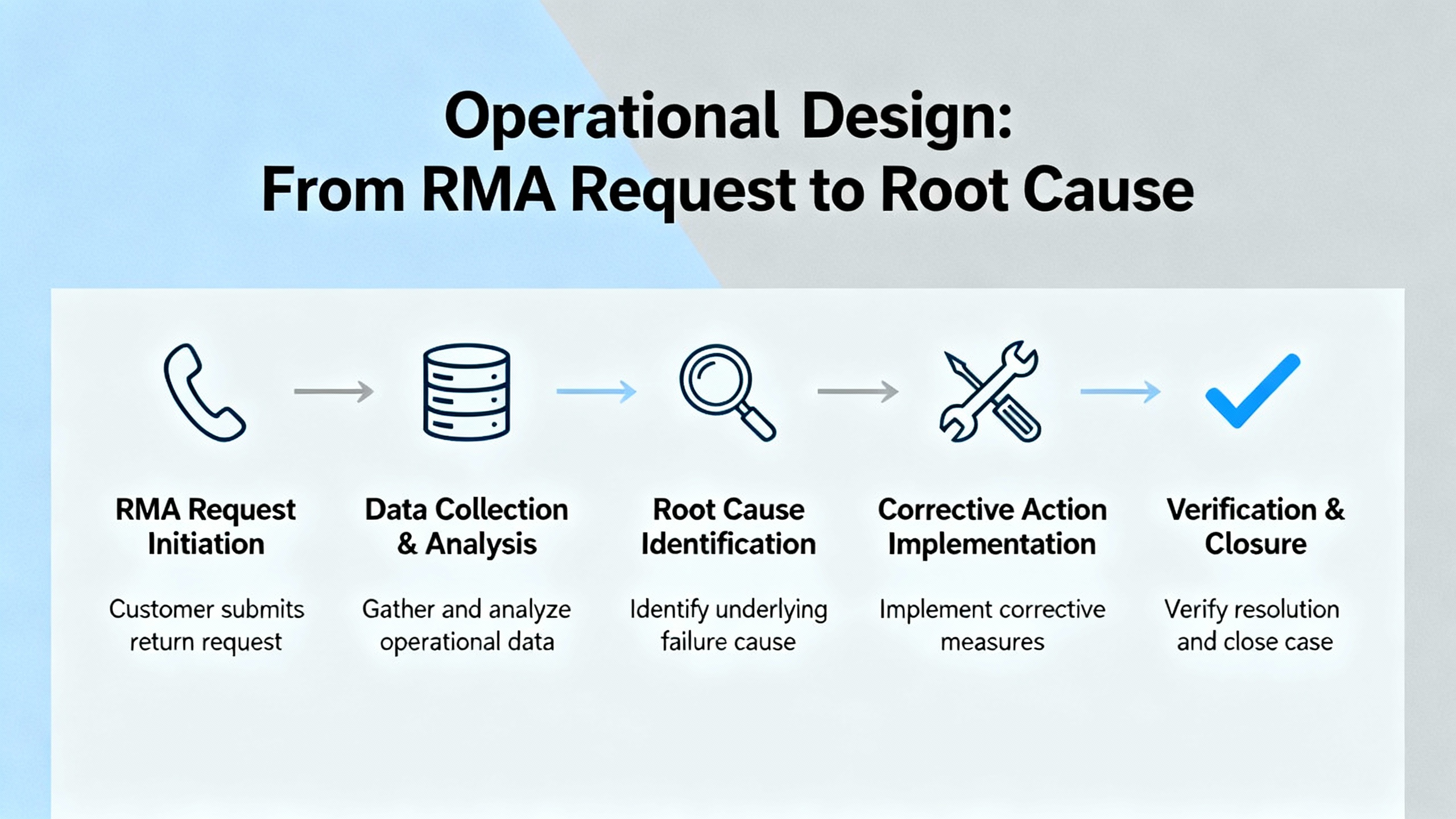 In industrial sectors this is sometimes formalized as a parts return management program. A case study from an automotive OEM described by Intellinetsystem shows what that can look like: engineering teams raise structured return requests with serial numbers and failure codes, return centers validate and communicate with dealers and carriers, and technicians perform mechanical and software diagnostics to capture root cause data. That structure is what lets you turn returns into quality feedback rather than just a cost center.