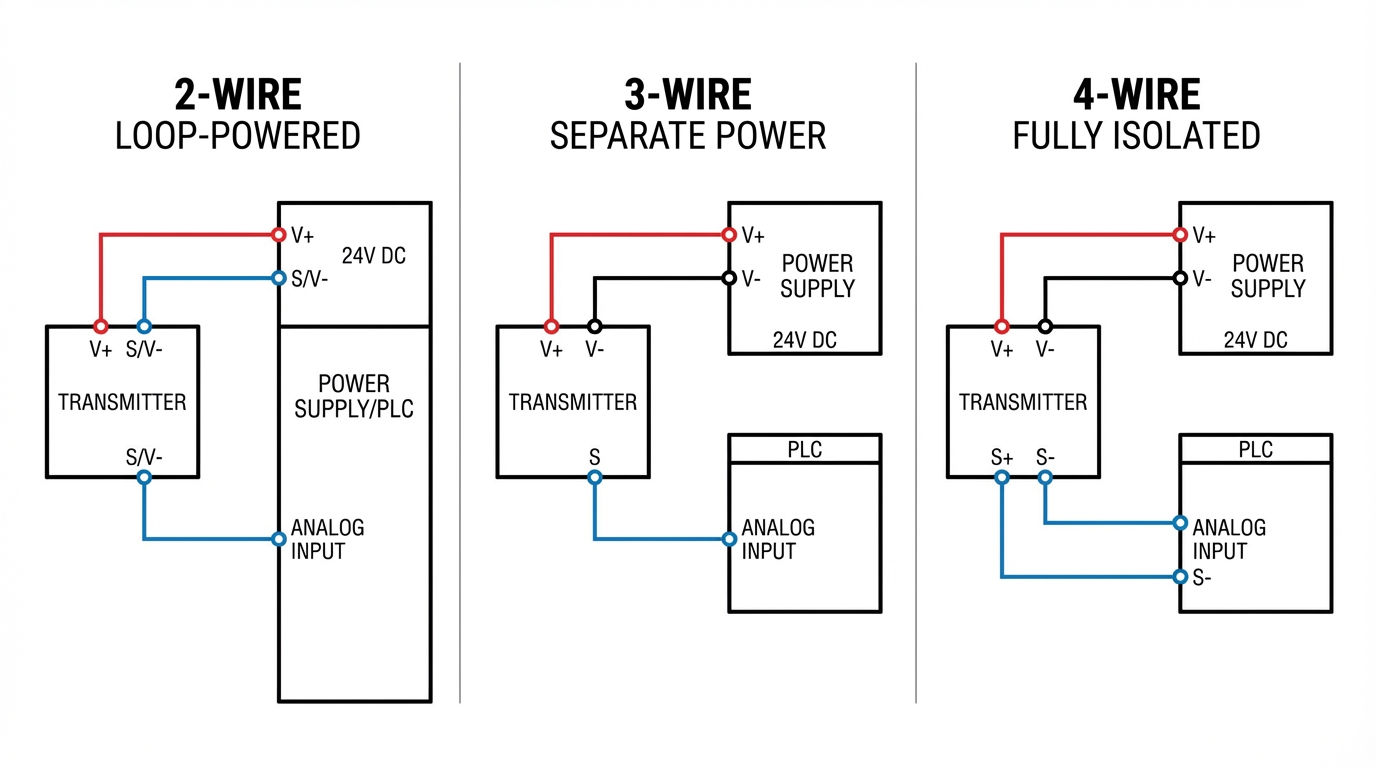 For most simple temperature loops where the transmitter does not need much power, a two‑wire loop‑powered module is ideal. It keeps wiring simple and leverages the inherent noise robustness of 4-20 mA. As Ashcroft and The Transmitter Shop explain, if your transmitter requires more power for a large display, advanced diagnostics, or internal processing, a three‑wire configuration with separate power and signal conductors gives you extra headroom. Four‑wire transmitters, with fully isolated power and signal pairs, are best reserved for demanding analytical instruments or very noisy environments where eliminating ground loops is critical.
