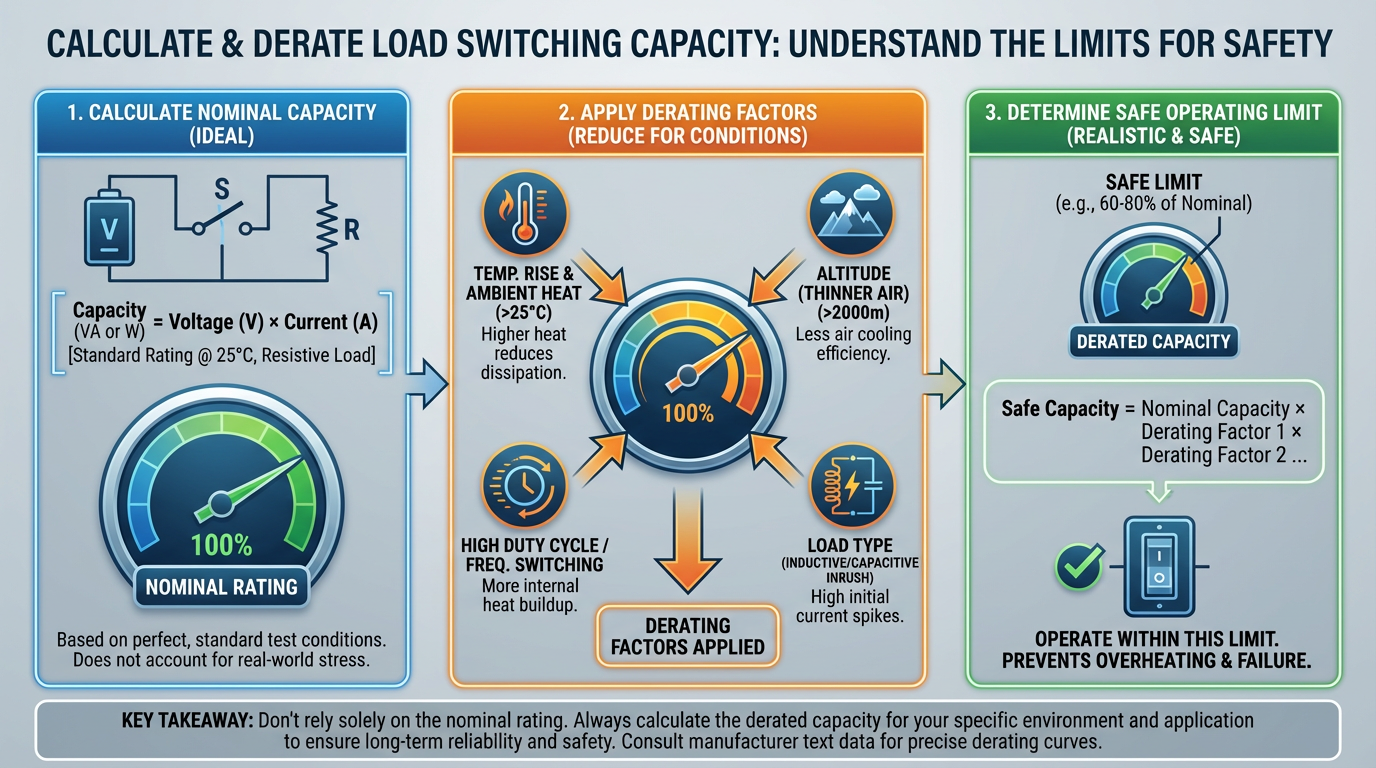Load switching capacity is not only about steady current; it is about what happens when you turn a load off. Inductive loads store energy in their magnetic fields. When you interrupt that current, the energy has to go somewhere, and it appears as voltage.
