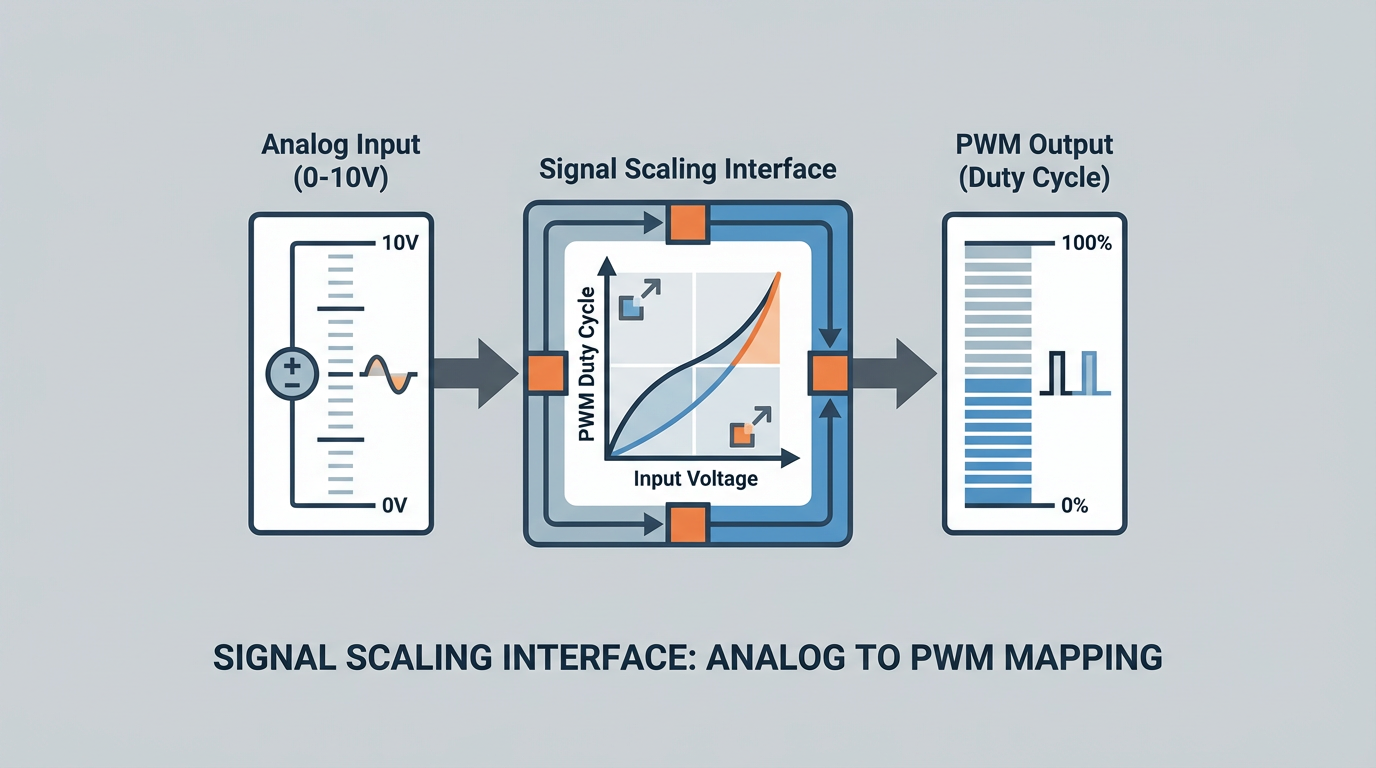 From a control standpoint this means the PWM output module is your digital-to-analog converter. Whether you command it with an analog 0–10 V input, a 4–20 mA loop, or a high-level numeric value from a controller, all of those inputs end up as a duty cycle between 0% and 100%. In practical systems I want that mapping to be monotonic, repeatable, and, where possible, linear over the operating range.