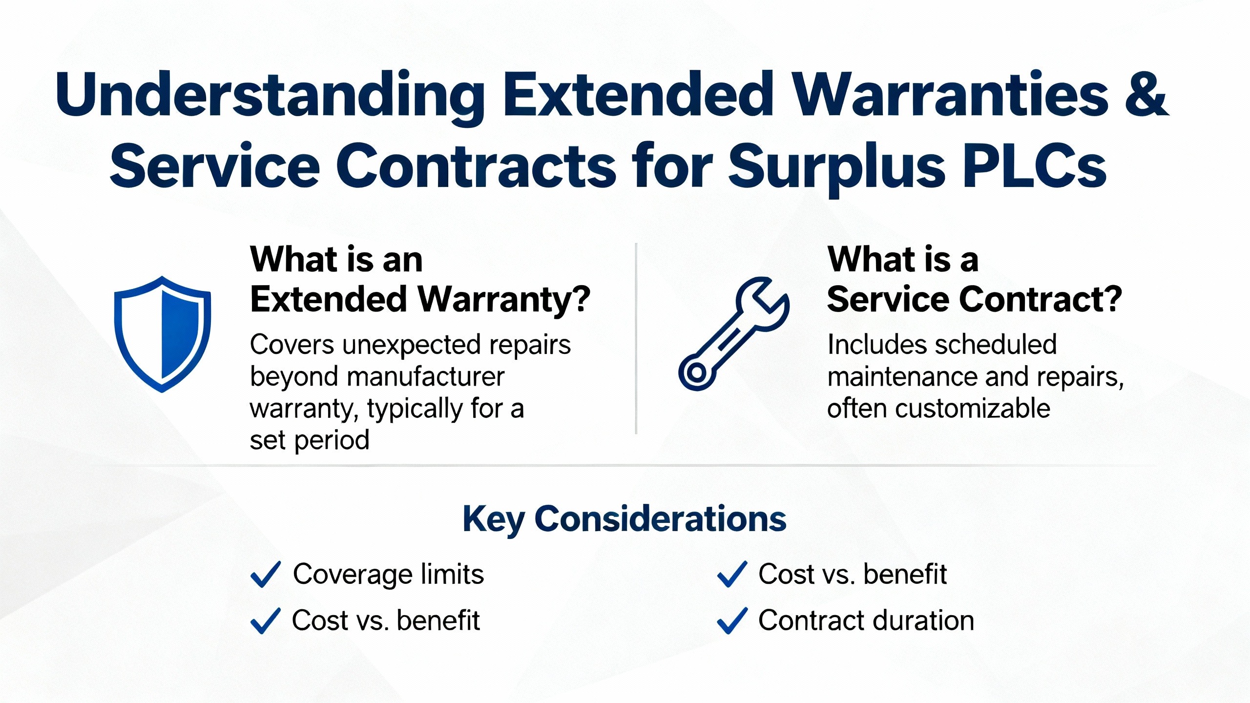 On the other hand, if your surplus PLC drives a non‑critical test stand, runs only a few hours a week, or can be swapped out easily from spares, the standard six‑to‑twelve‑month warranty may be enough. FasterCapital’s warning about paying for overlapping or low‑value coverage applies here as well. If the extended plan adds little beyond what you already have in the base warranty and your own maintenance capability, the money is usually better spent on spare parts and in‑house skills.